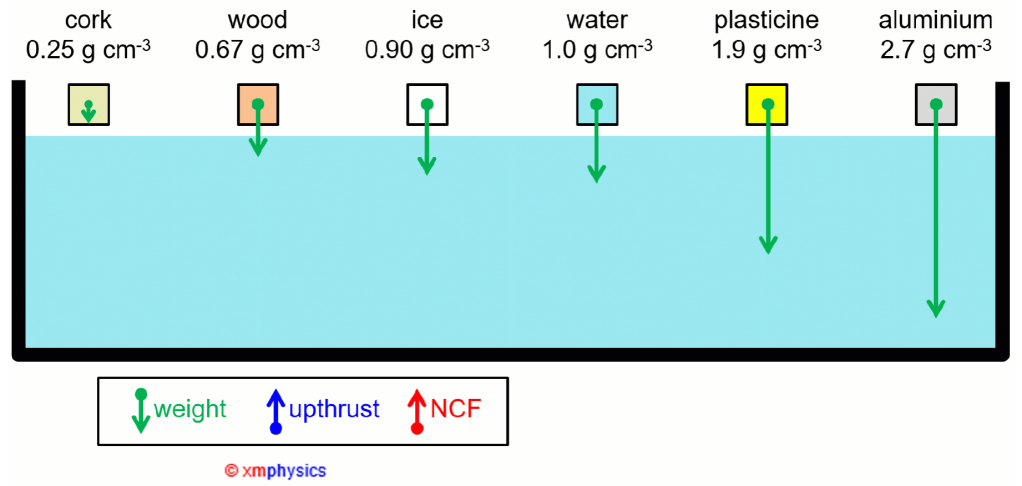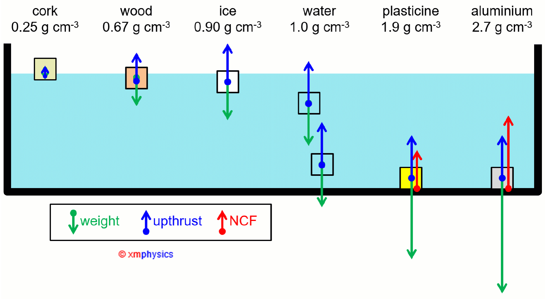 - It will displace just enough fluid to generate the amount of upthrust exactly equal to its weight.