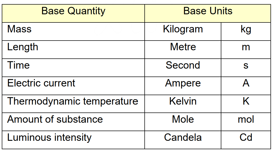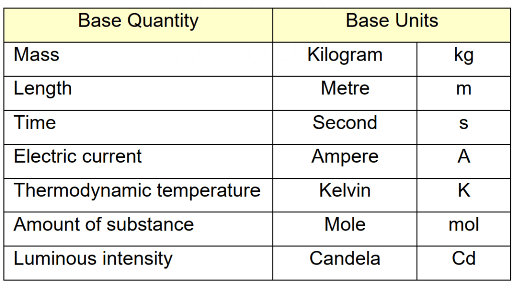 While the Americans are still clinging on to the imperial system (e.g. 1 foot = 12 inches, 1 pound = 16 ounces), the rest of the world have switched to the metric system (e.g. 1 m = 1000 mm, 1 kg = 1000 g). More precisely, we have adopted the International System of Units (Le Système International d’Unités), aka SI Units, which is built upon 7 base units of 7 base quantities.