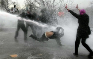 Technically, this 1.6 kN is the (leftward) force experience by the water jet. But by figuring out the force exerted by the wall on the water jet, we can infer the (rightward) impact force the water jet exerts on the wall. Because these two forces are an action-reaction pair.