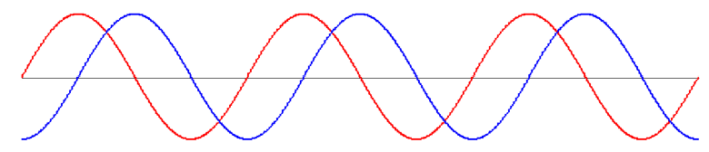 In the previous section, we saw how two pulses can superpose. Actually, the H2 syllabus is mostly concerned with the superposition of continuous sinusoidal waves (drawn in red and blue below).