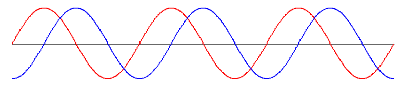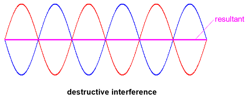 In the previous section, we saw how two pulses can superpose. Actually, the H2 syllabus is mostly concerned with the superposition of continuous sinusoidal waves (drawn in red and blue below).