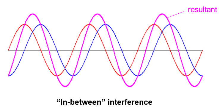 What if the phase difference is some in-between value? Well, the outcome will still be a sinusoidal wave, but the amplitude will be between 0 and 2A. For example, when the phase difference is 0.5π, the resultant amplitude is . (You may have learnt the