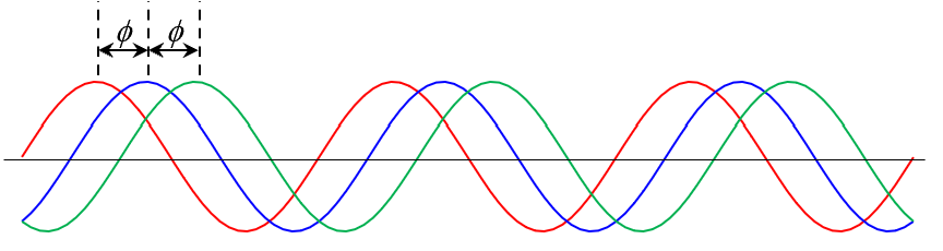 This has the important implication that when the 3 light rays arrive at a point on the screen, ray B will lag ray A by the same phase difference as ray C lags ray B.
