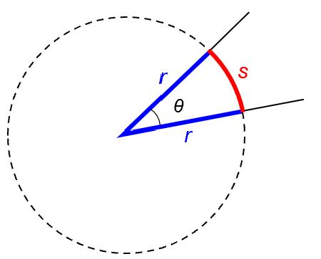 Consider an angle subtended by an arc of a circle. The magnitude of that angle θ, in radian, is simply the ratio of the arc length s to the radius r.