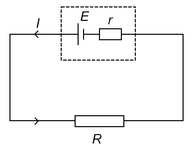 An external resistance R is powered by a battery of emf E.