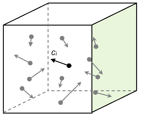 In this section, we will discover the quantitative link between a gas’s pressure (a macroscopic property) and the gas particles’ mean-square-speed (a microscopic property). Buckle up. It is going to be a long but exhilarating ride.