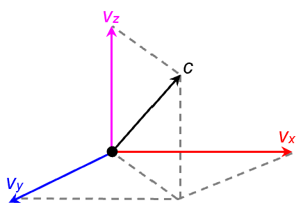 Now let’s address the elephant in the room: the gas particles are not constrained to move only long the x-axis. Each particle, instead of having a single-directional velocity vi, actually has a three-dimensional velocity .