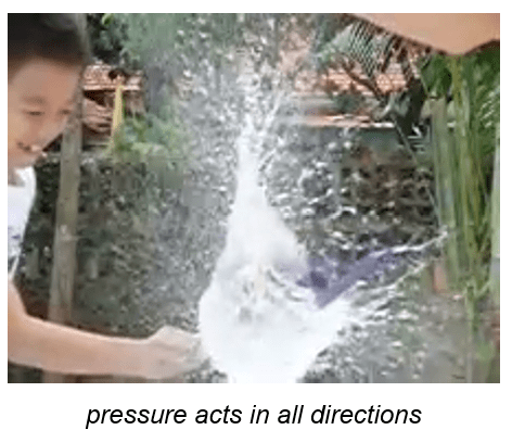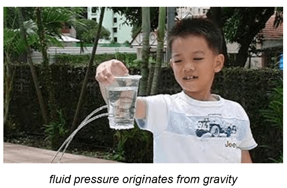This means that besides vertical compression caused by gravity (fun fact: seawater is 4% denser at 10, 000 m depth), a fluid is also subjected to horizontal compression. As such, every molecule in a fluid exerts repulsive forces against all the surrounding molecules in all directions. This leads to the unique property of fluids: pressure “acts in all directions”. (Do realize that pressure, as a scalar quantity, has no direction. It is the pressure forces that act in all directions).