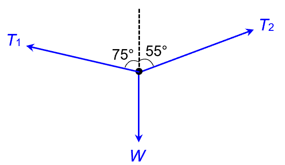 When a 20 N weight is hung on a clothes line, the line sags as shown in diagram. Determine the tension in the clothes line.