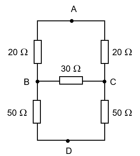 Evaluate the resistance between i) BC and ii) AD.