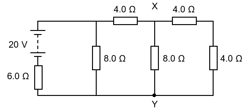 What is the potential difference between junctions X and Y?