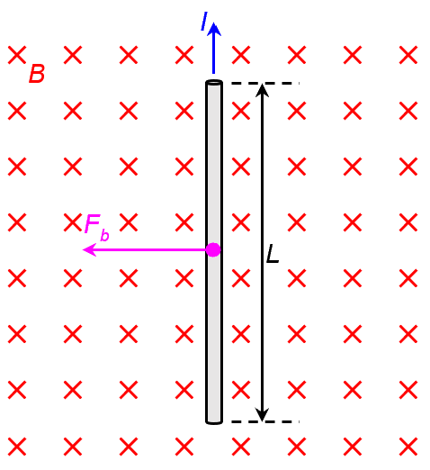 The magnitude of the magnetic force Fb exerted on long straight wire of length L carrying a current I placed perpendicular to a uniform magnetic field B is given by the formula