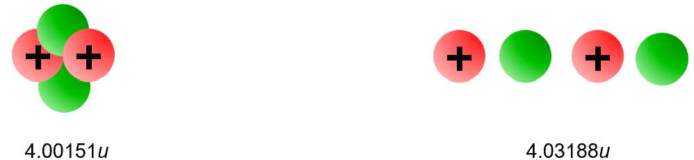Did you notice that the mass of a He-4 is smaller than the mass of the 2 protons and 2 neutrons that formed it?
