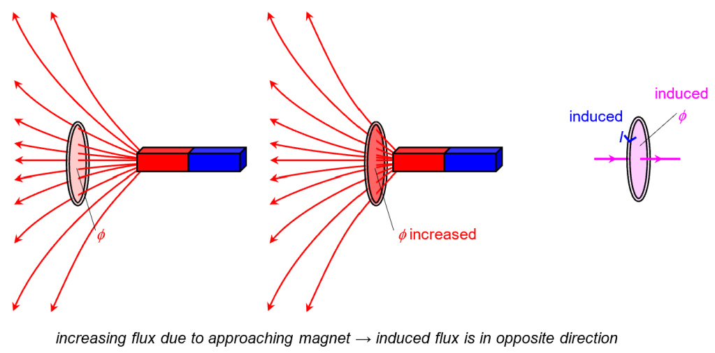 Lenz’s Law bypasses the mathematics and provides an intuitive short-cut to figuring out the direction of the induced emf: the induced emf is always in the direction that opposes (or tries to oppose) the cause of the induction.
