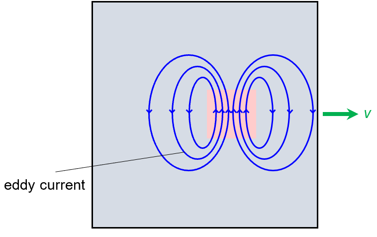 However, the entire plate is conducting. This results in induced currents that flow in closed loops. We call this kind of current eddy current.