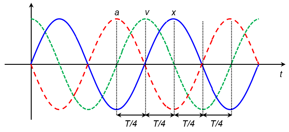- In a SHM, displacement, velocity and acceleration all vary sinusoidally with time.