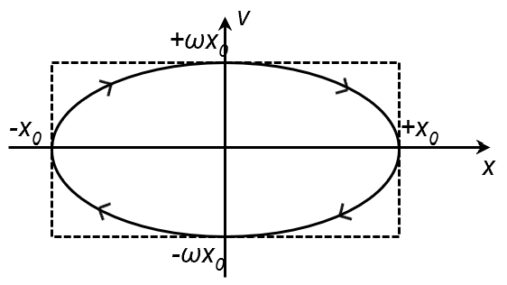 You should be able to deduce that the oscillation progresses in the clockwise direction along the elliptical graph. This is because for the top half of the graph, the velocity is positive, so the displacement should progress towards the right (to become more positive). Likewise, for the bottom half of the graph, the velocity is negative, so the displacement should progress towards the left (to become more negative).