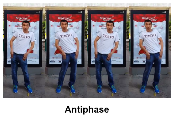 If the phase difference between two oscillations is 180° or π radian, they are said to be completely out of phase, or in antiphase.