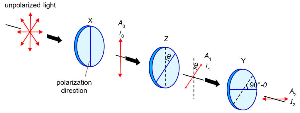 Let’s confirm this with some math. Since X and Z are misaligned by angle θ, the intensity of light after passing through Z is