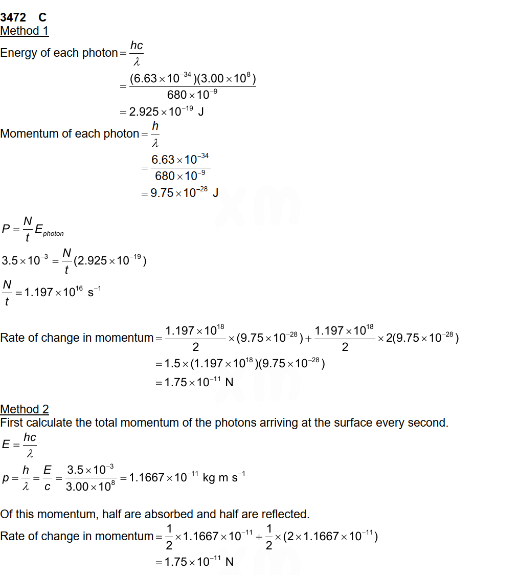 SS3472 ERRATA: In the working, the unit for momentum of each photon should be kg m s-1 (not J) Share this: Click to share on X (Opens in new window) X Click to share on Facebook (Opens in new window) Facebook Like Loading... Related Uncategorized