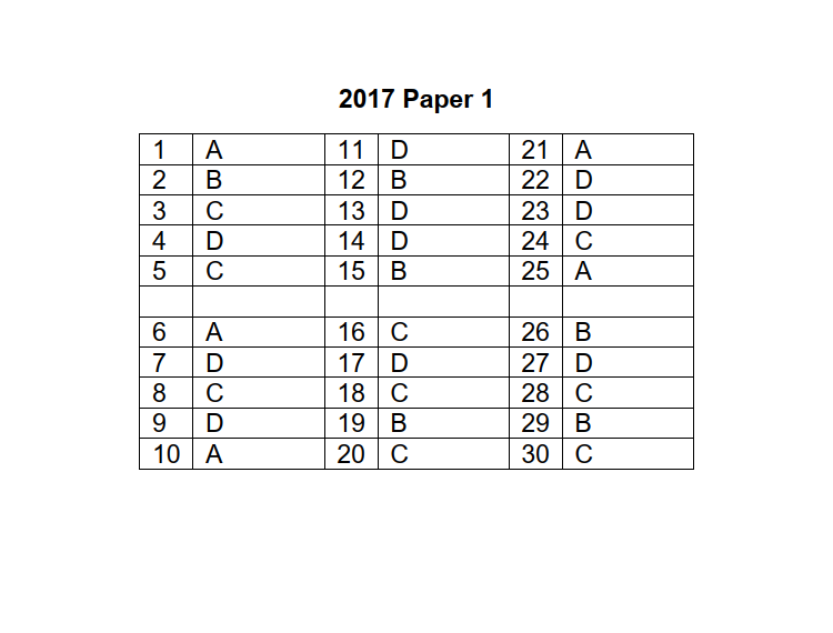2017 P1 Answer Key