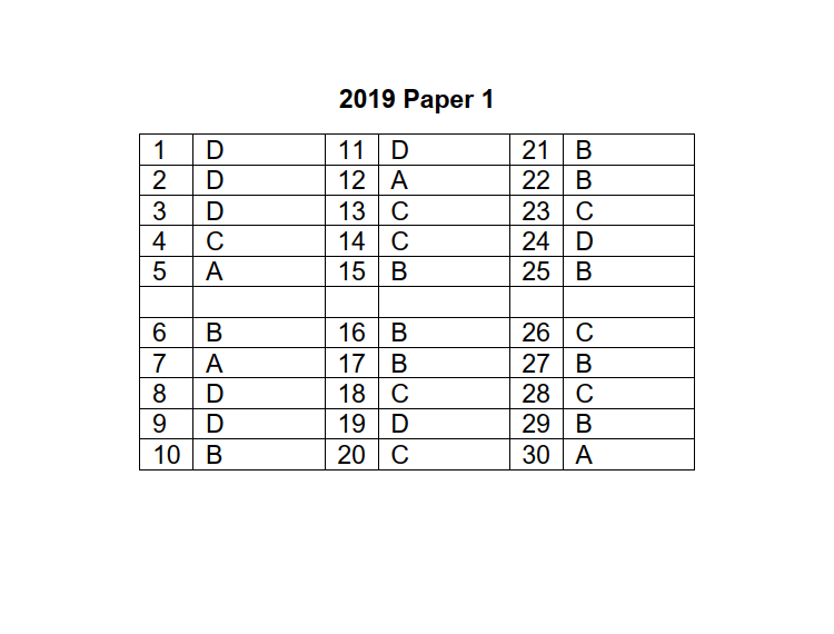 2019 P1 Answer Key