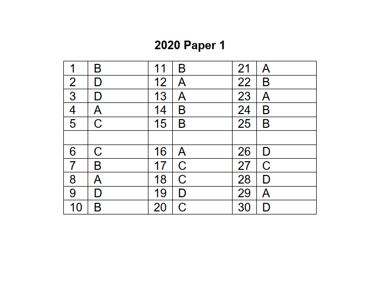 2020 P1 Answer Key